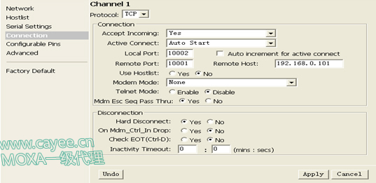 接下來在Device Manager軟件里的Connection頁(yè)面中分別設(shè)置服務(wù)器端Xport和客戶端Xport的連接參數(shù)如圖所示: